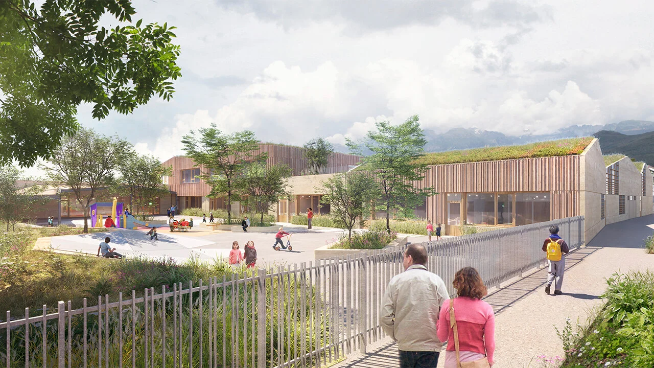 Construction d’un Groupe Scolaire composé de 6 classes maternelles, de 10 classes élémentaires, d’un restaurant scolaire et d’un centre de loisirs.
