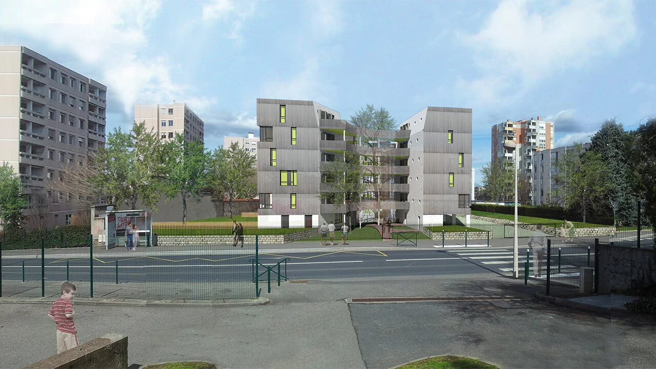 Cette ouverture, mise en perspective urbaine, offre aux futurs habitants un lieu de vie collectif, de rencontre où se mêlent l’ensemble des terrasses jardins desservis par une plateforme d’accueil à chaque étage. Cette « introversion » fonctionnelle invite à organiser des logements qui sont accessibles par leur terrasse suspendue dans cette rue habitée comme une ville dans la ville.